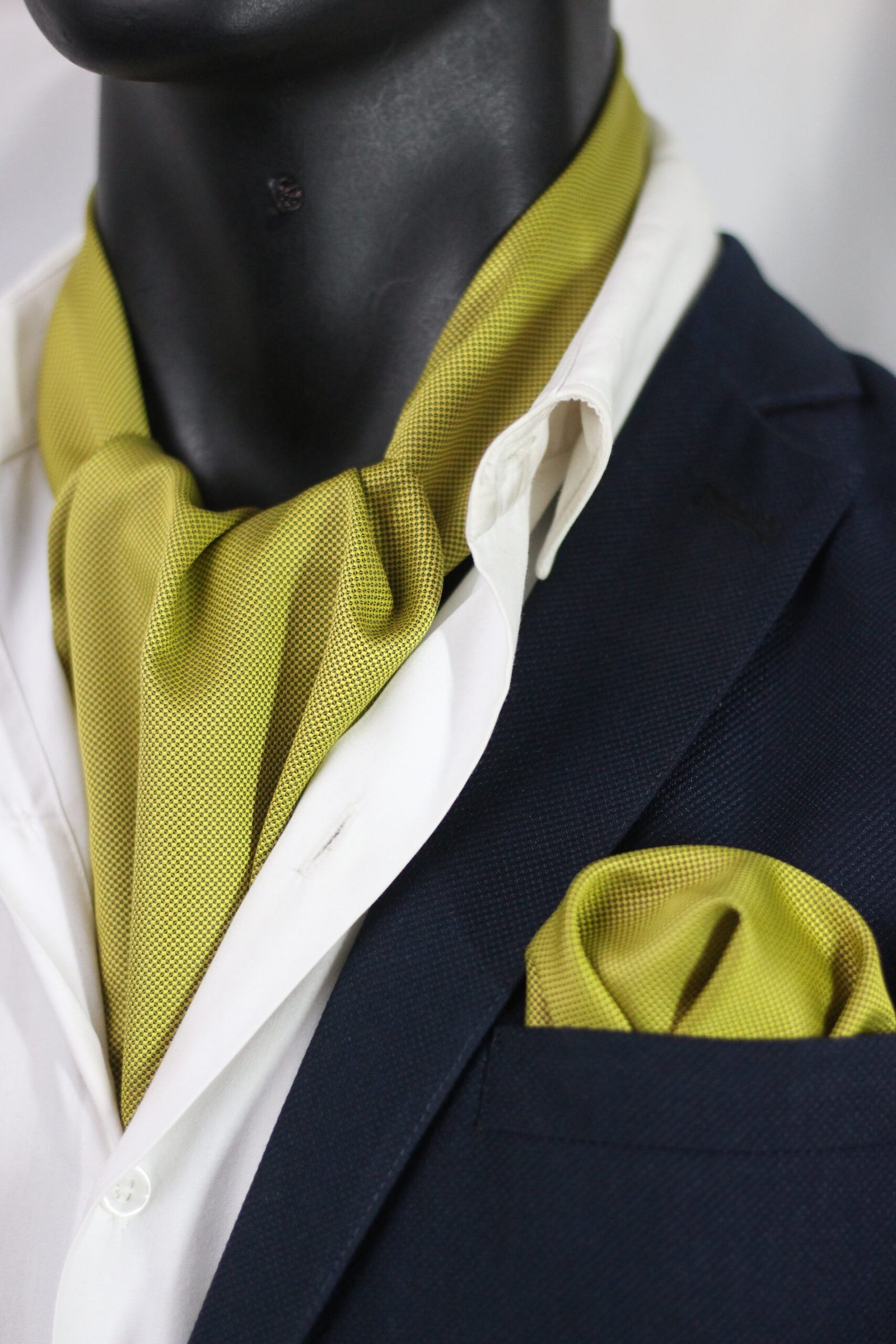 match the ascot with your look. So, with a patterned cravat like this one it’s a good idea to wear a solid shirt or a small patterned shirt, with a solid jacket to